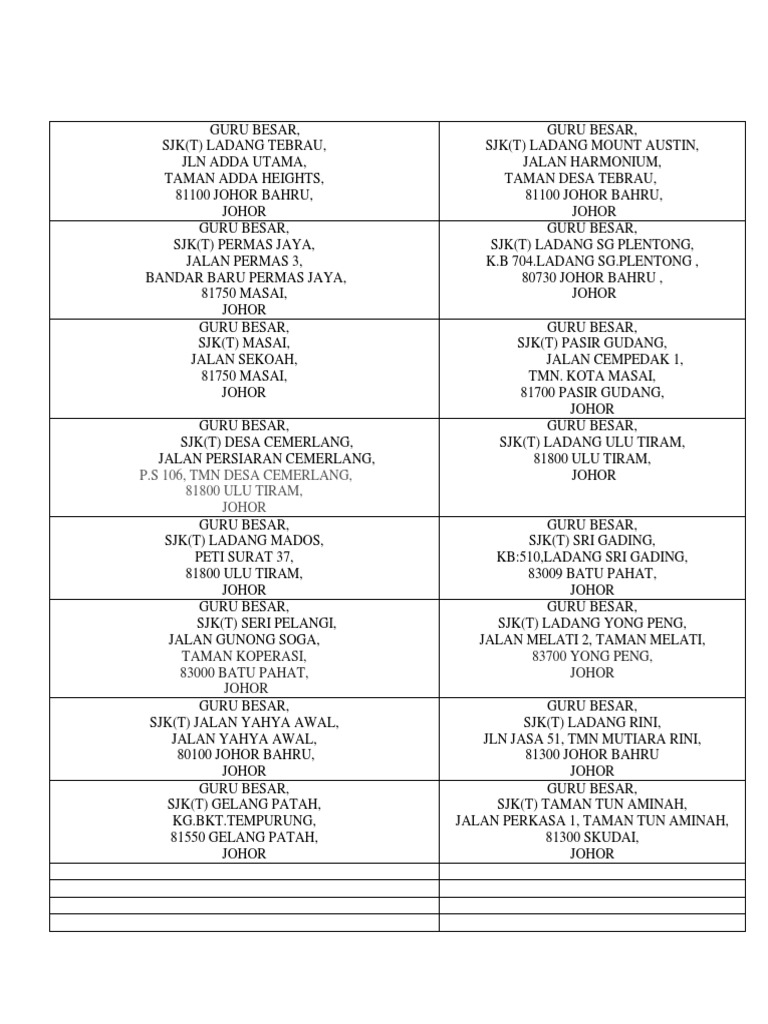 School List Johor Pdf Malaysia